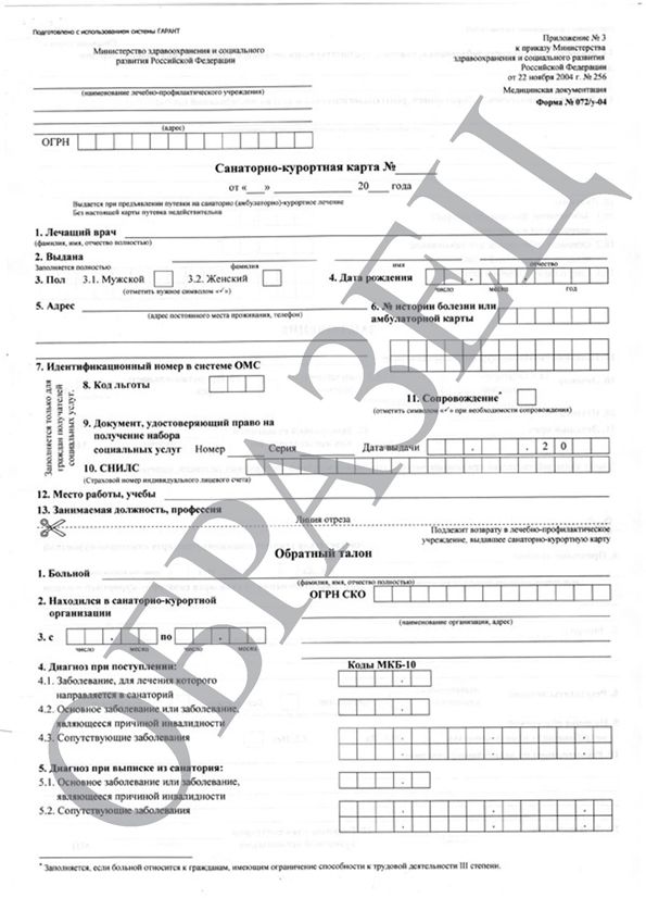 - Санаторно-курортная карта (форма 072/у и форма 076/у)